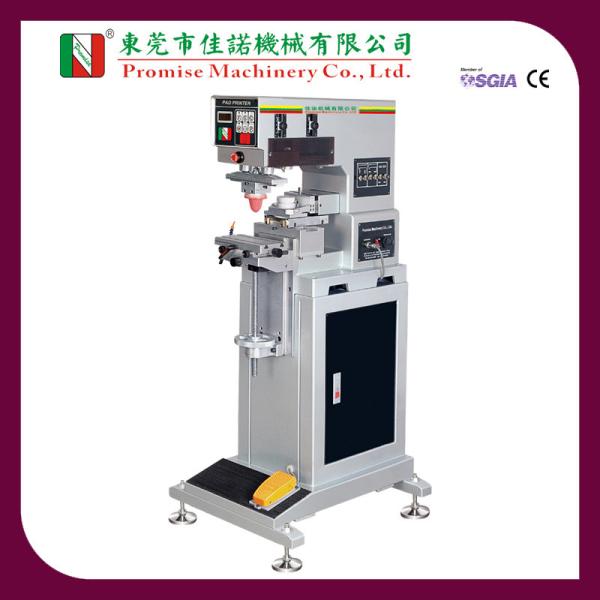 This single colour sealed cup Pad Printer is suitable for pad printing plastic, metal, wood, glass, leather, and ceramic
